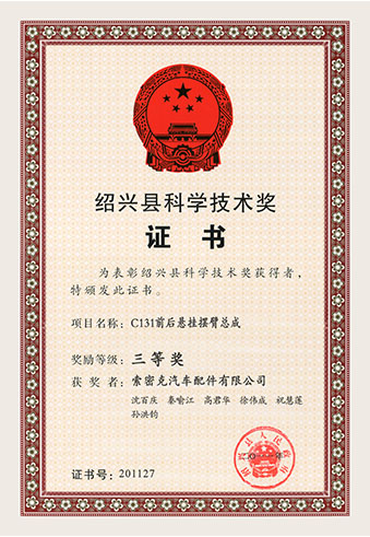 公司已先后通過IATF16949質(zhì)量管理體系認(rèn)證、ISO/14001環(huán)境管理體系認(rèn)證和OHSAS18001職業(yè)健康安全管理體系認(rèn)證。是“國家高新技術(shù)企業(yè)”“行業(yè)龍頭企業(yè)”和“全國百家優(yōu)秀汽車零部件供應(yīng)商”。